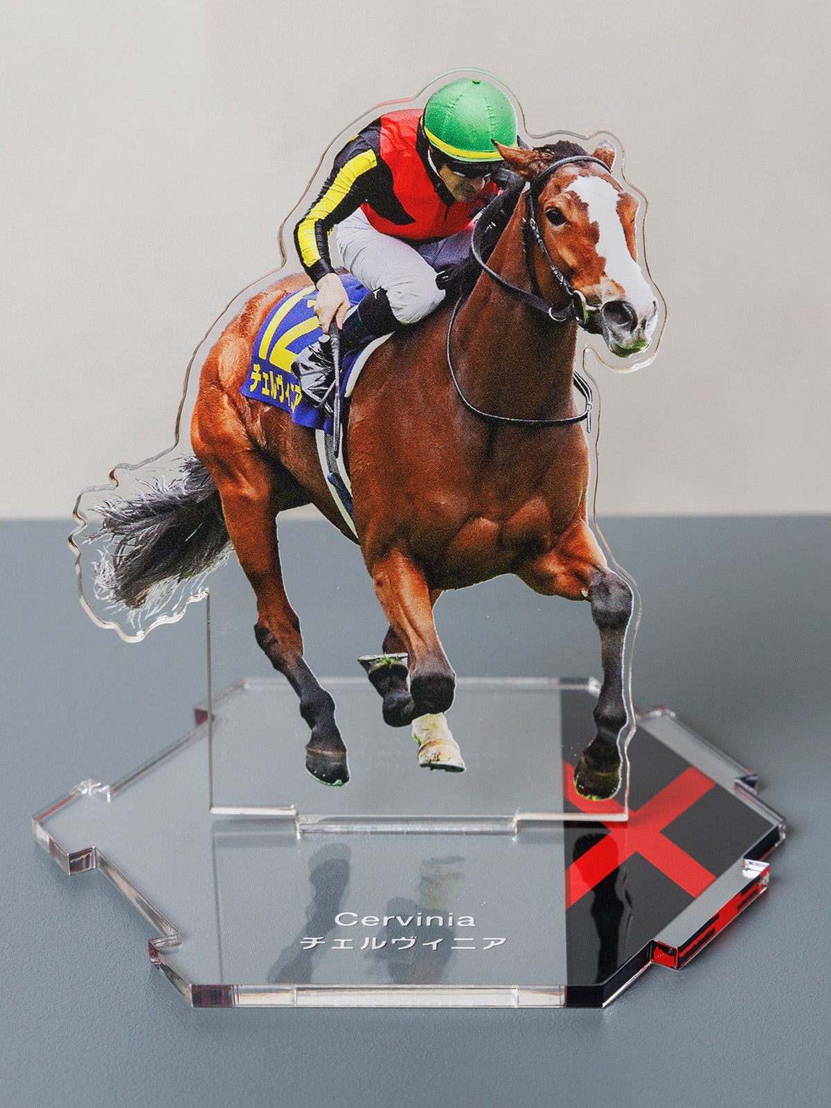 2024年のオークス(GI)と秋華賞の牝馬二冠を制し、最優秀3歳牝馬に輝いたチェルヴィニアのオリジナルアクリルスタンドです。