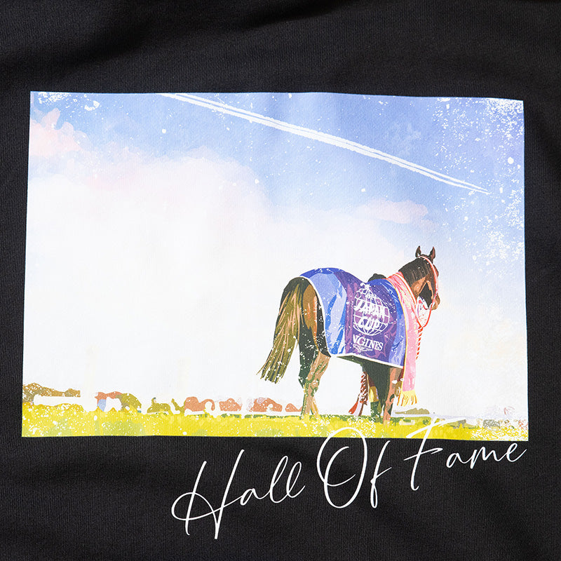 ラストランとなったジャパンカップの優勝風景をモチーフにしたオリジナルイラストが特徴のパーカーです。