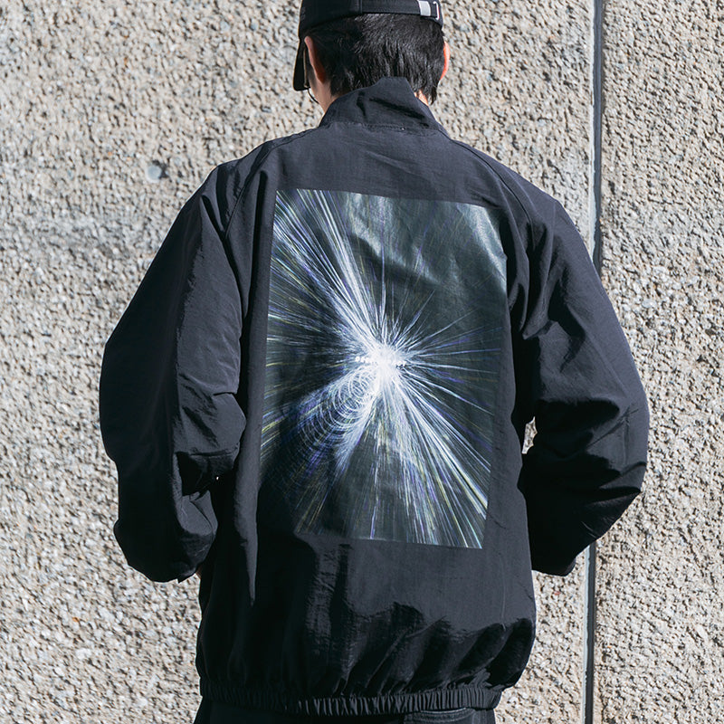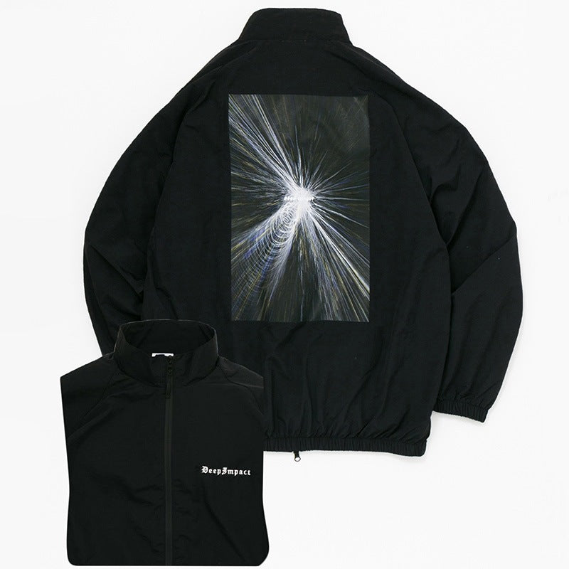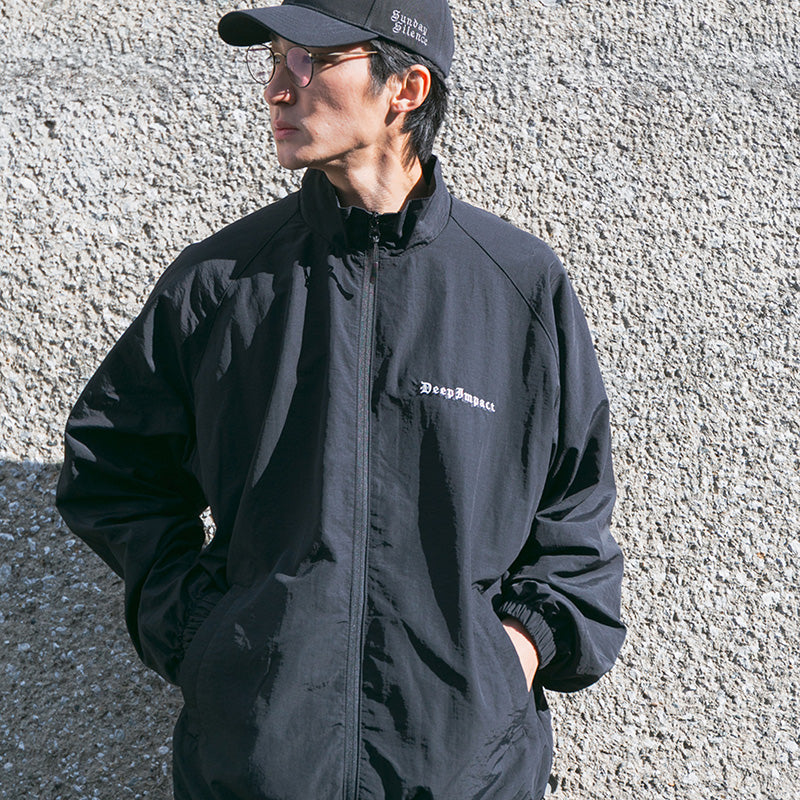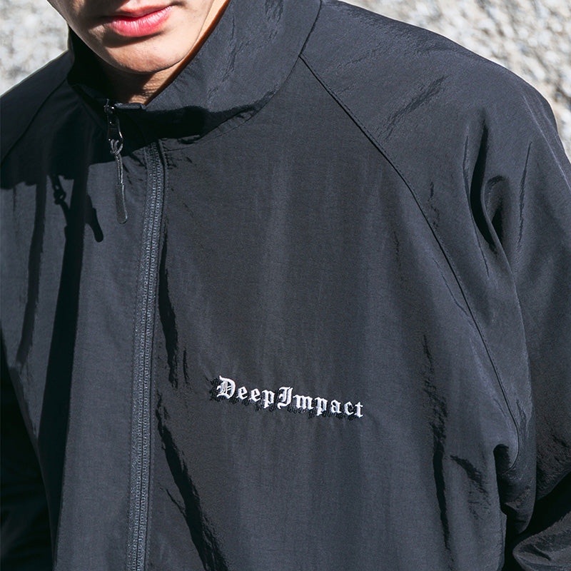 表面は左胸に馬名を刺繍でデザイン。裏面はディープインパクトのグラフィックを大胆にデザイン。普段使いもできるクールなブルゾンです。