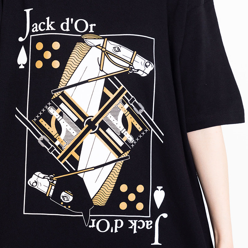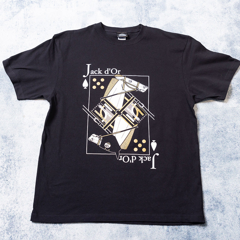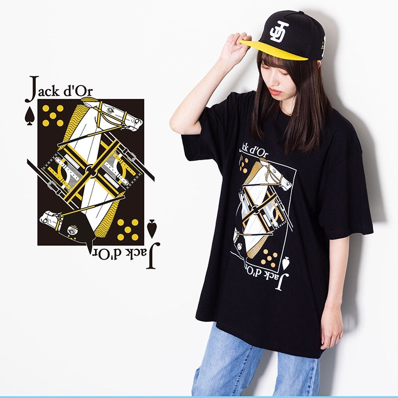 自慢のスピードを武器に2023年大阪杯(GI)を見事に逃げ切ったジャックドールのオリジナルTシャツB(黒)です。