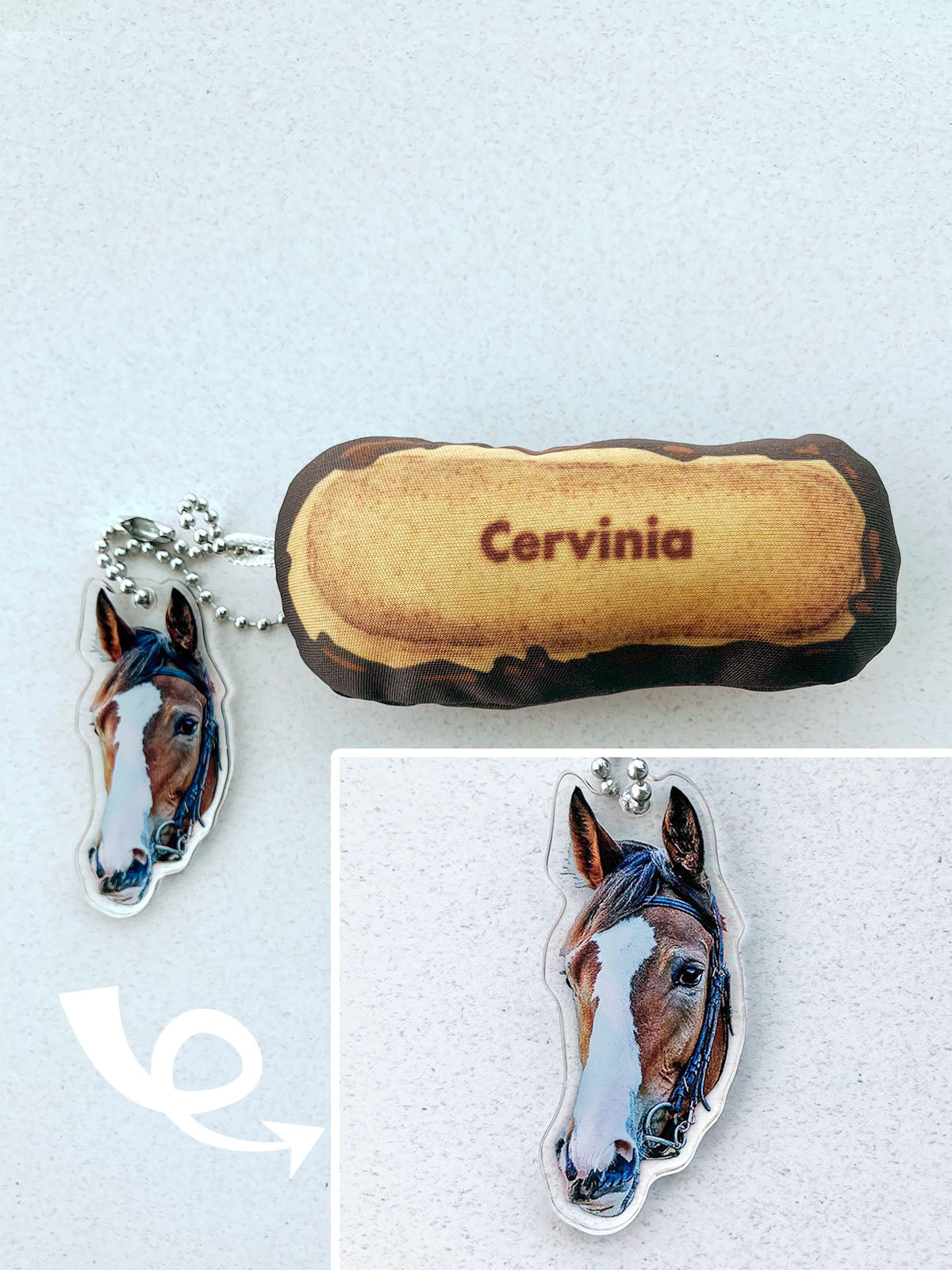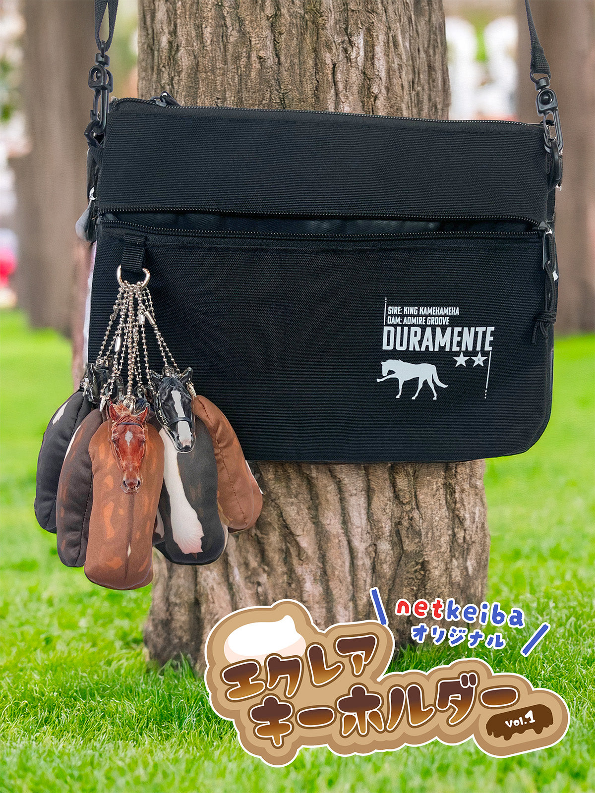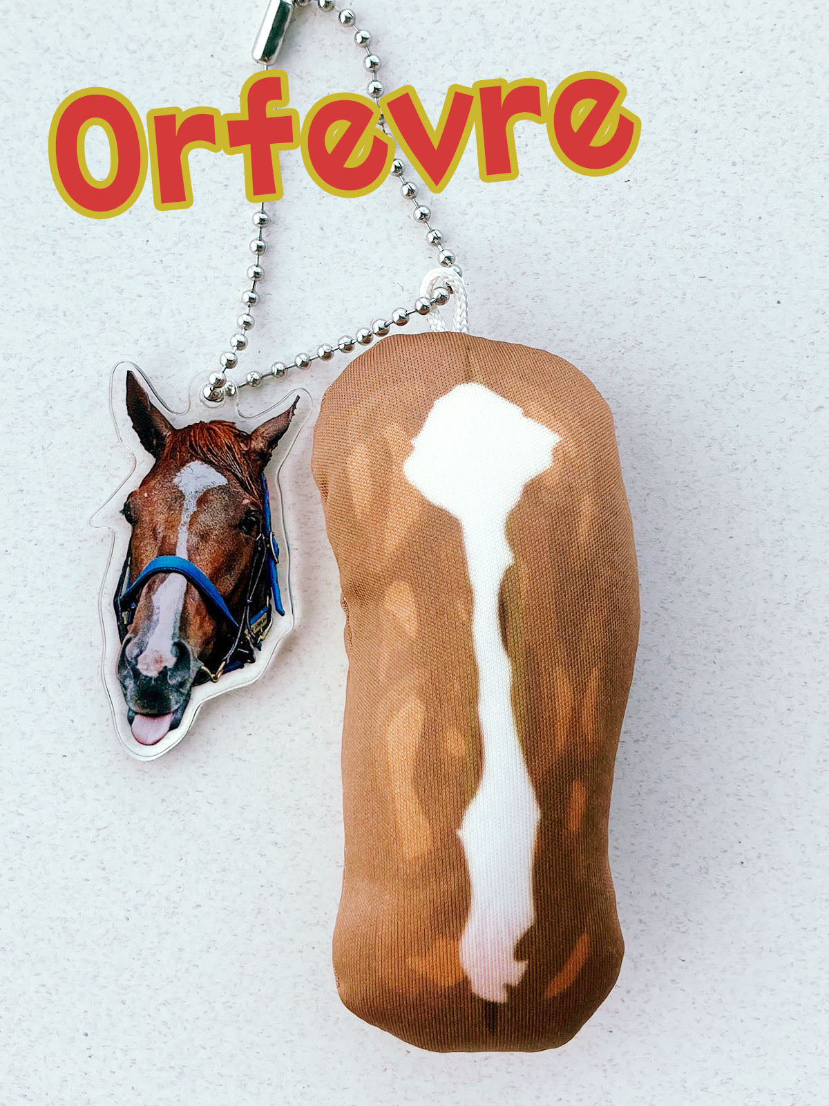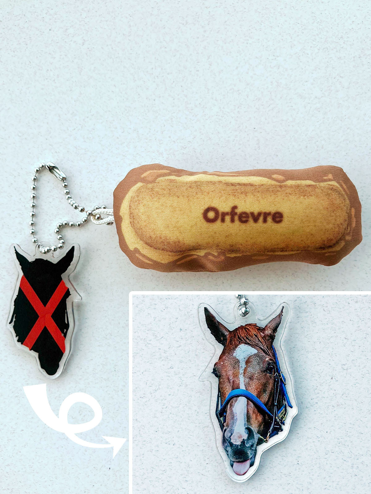 競走馬の個性である白斑がエクレア型のキーホルダーに!? 競走馬の新たな一面をグッズで楽しむことができる商品です。