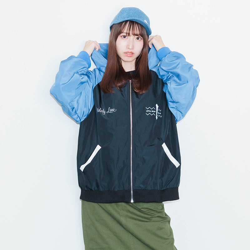 勝負服をモチーフにしたデザインの切替しやバックには馬名の由来+流星をモチーフにしたオリジナルロゴがプリントされたブルゾンです