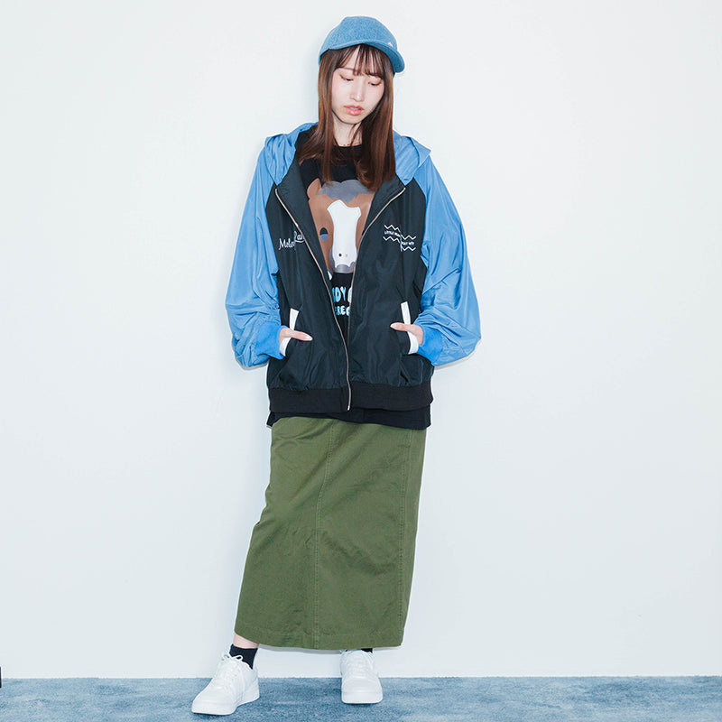 ※女性モデル着用感:かなり大きめです。ジャストサイズに着たい方はMをおすすめします。