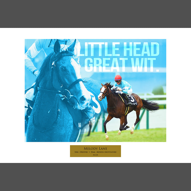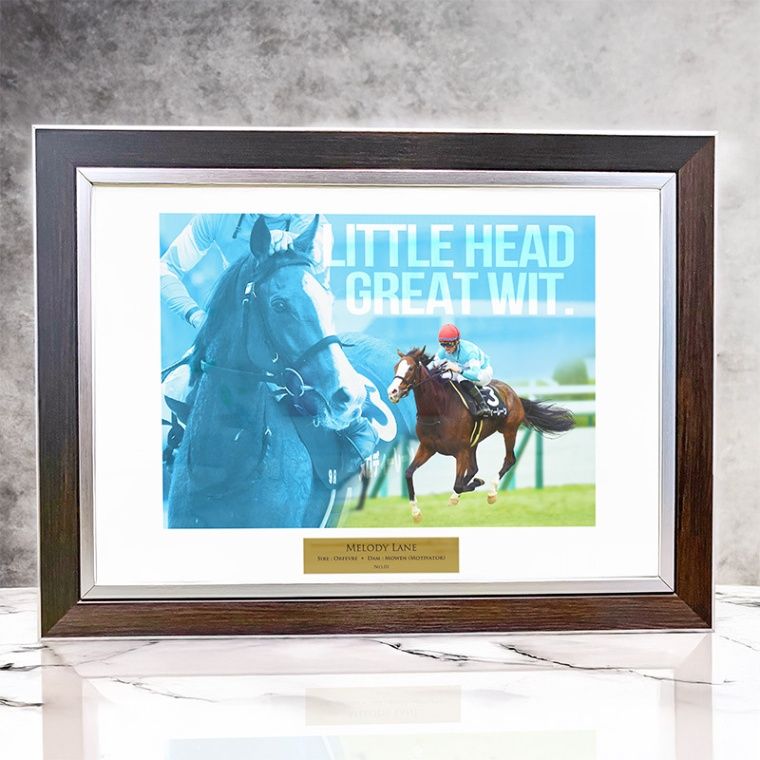 小柄な馬体で中央競馬を駆け抜けたメロディーレーン号を記念したパネルです。
