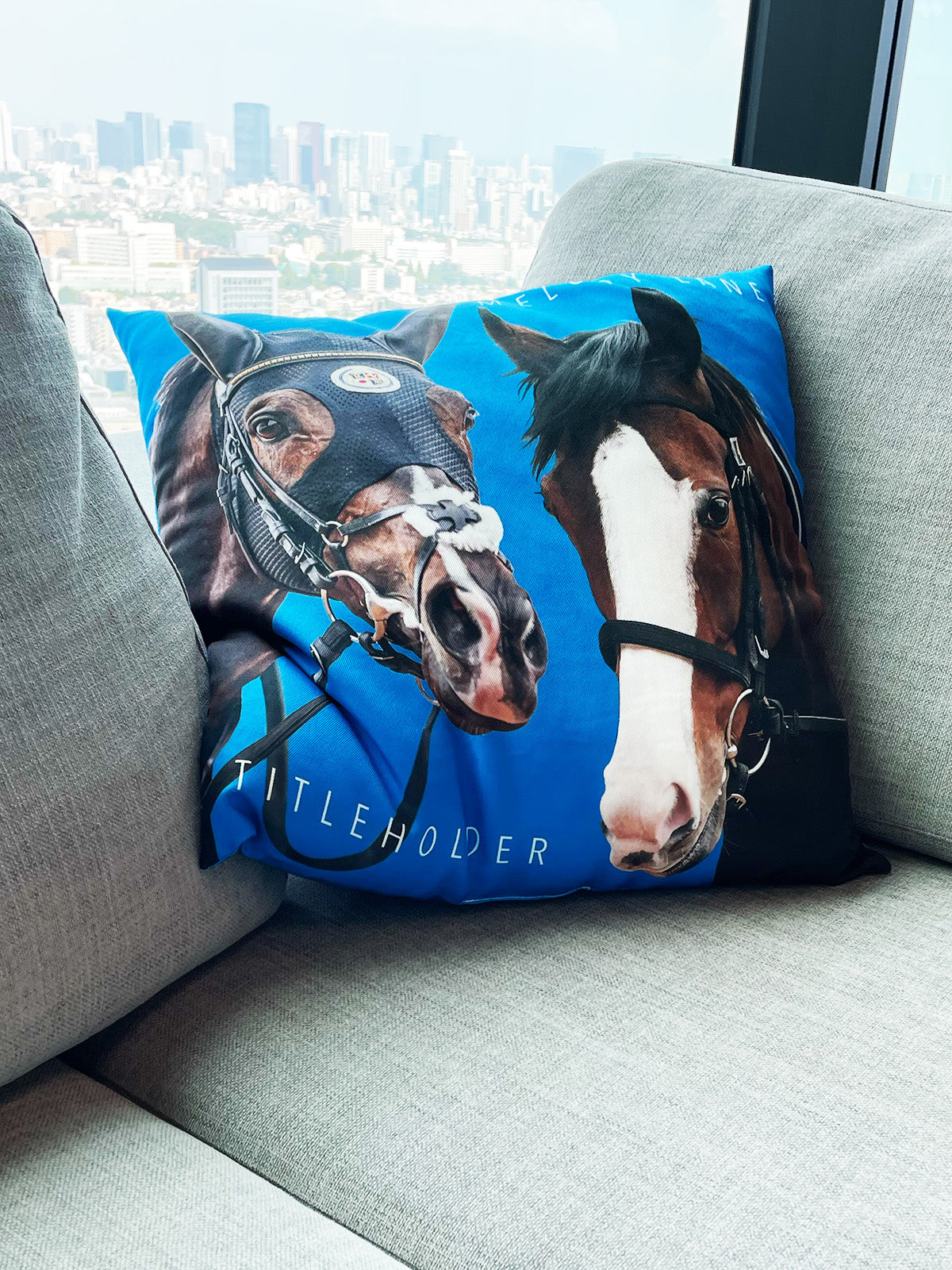2頭の顔が大きくプリントされたクッションはお家のリビングに置くとインパクト大です。