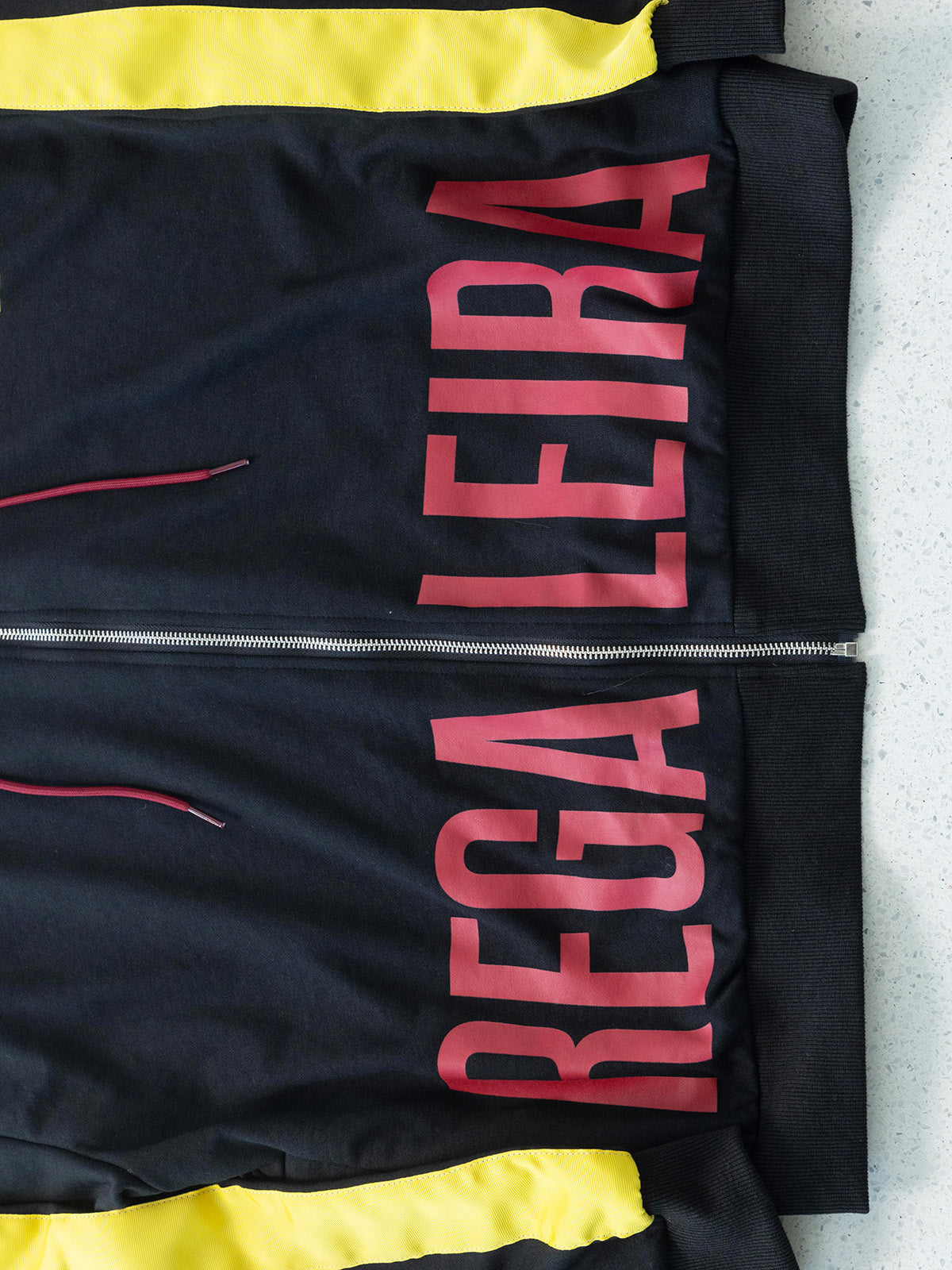 全体的に勝負服をモチーフにデザインし、背面は牡馬が多く出場するレースや紅一点で出場したレースの中で好成績をおさめるレガレイラの強さを視覚的に表現したグラフィックデザインとしました。