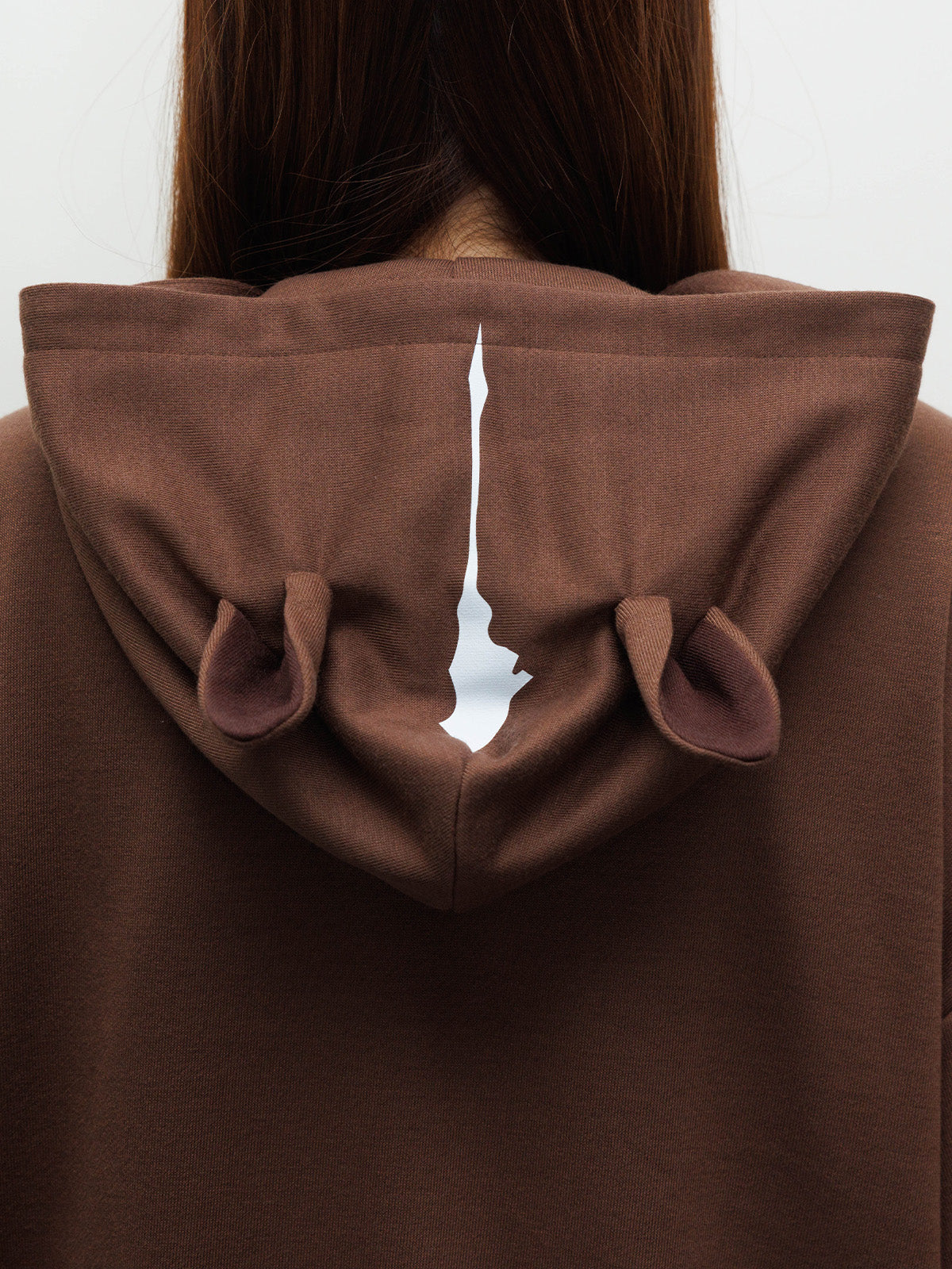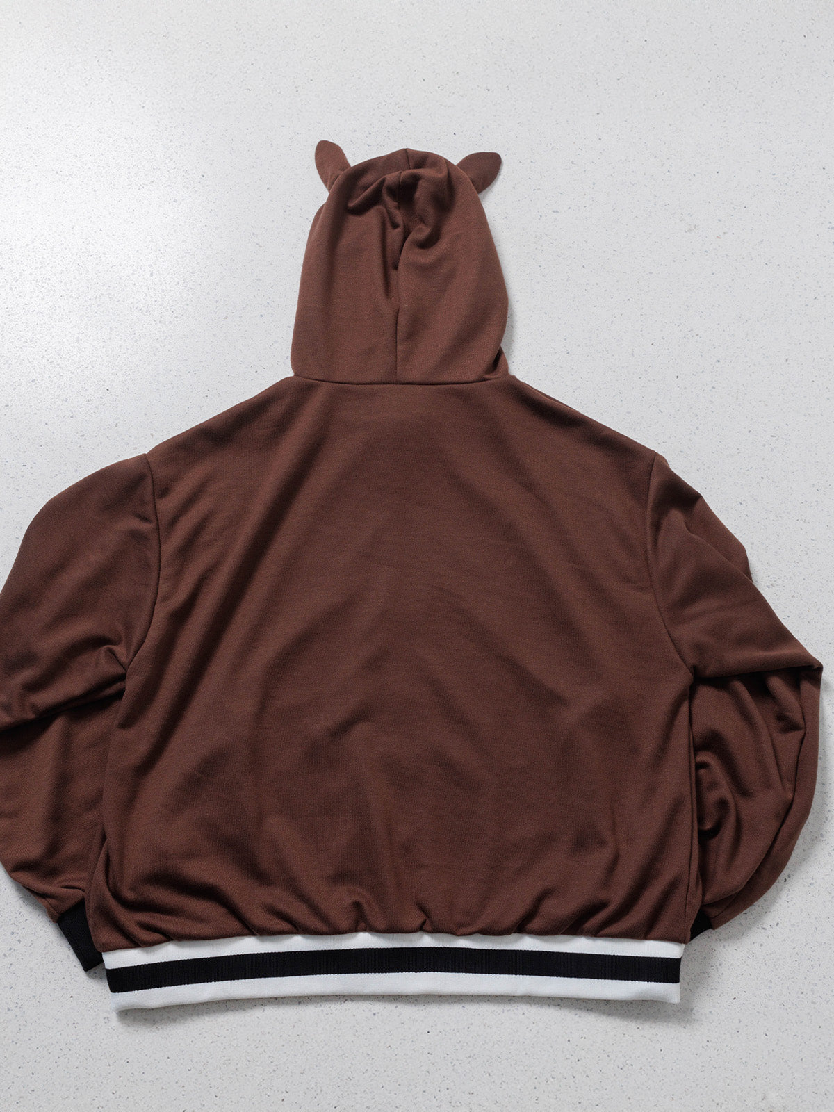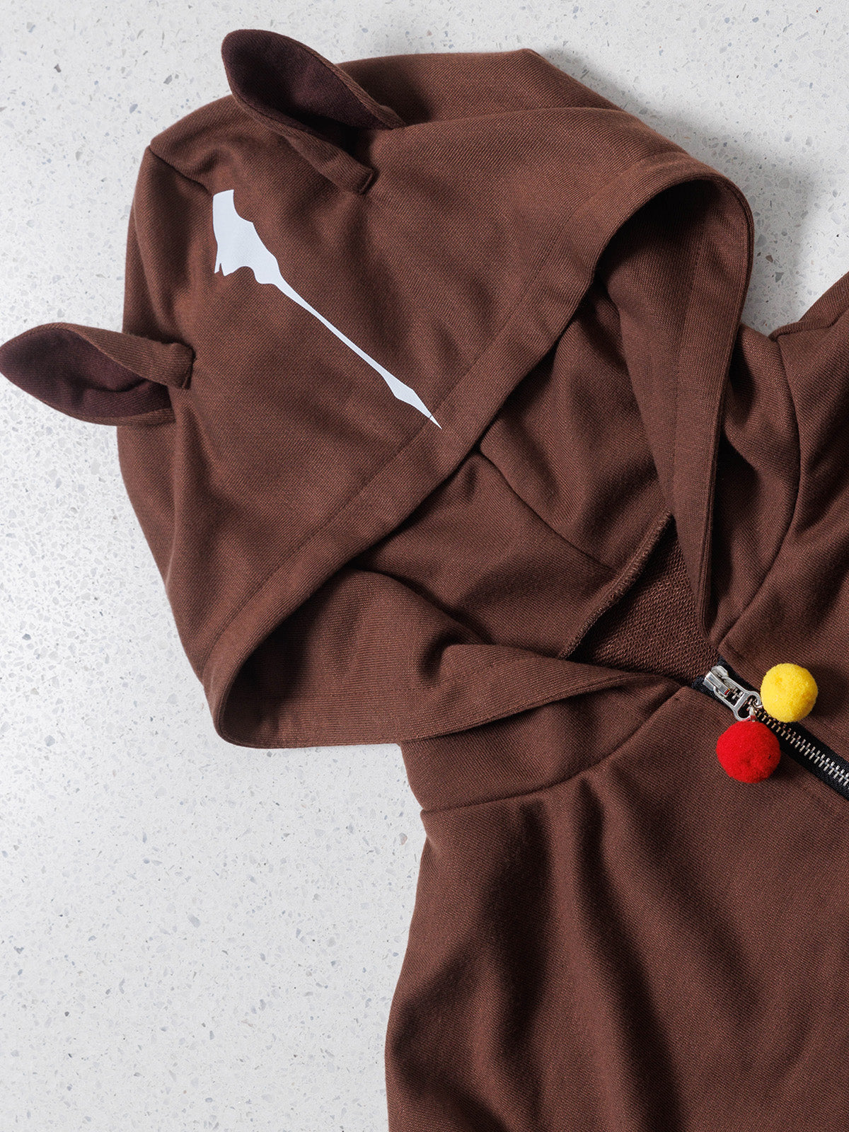 鹿毛をイメージした深みのあるブラウンカラーに、フード部分の流星マークが印象的。