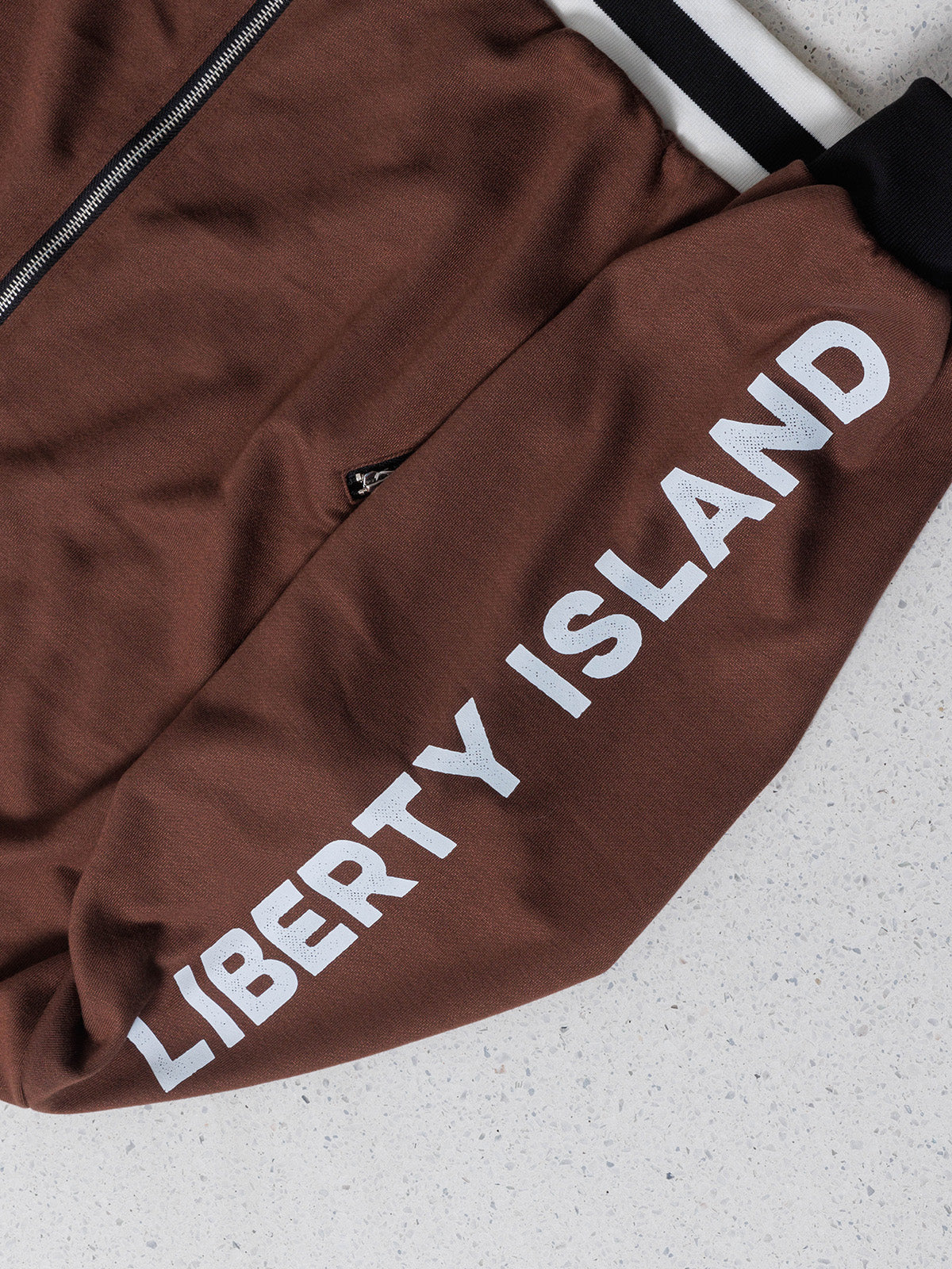 ファスナーには赤と黄色のポンポンをあしらい、リバティアイランドの勝負服カラーを再現。