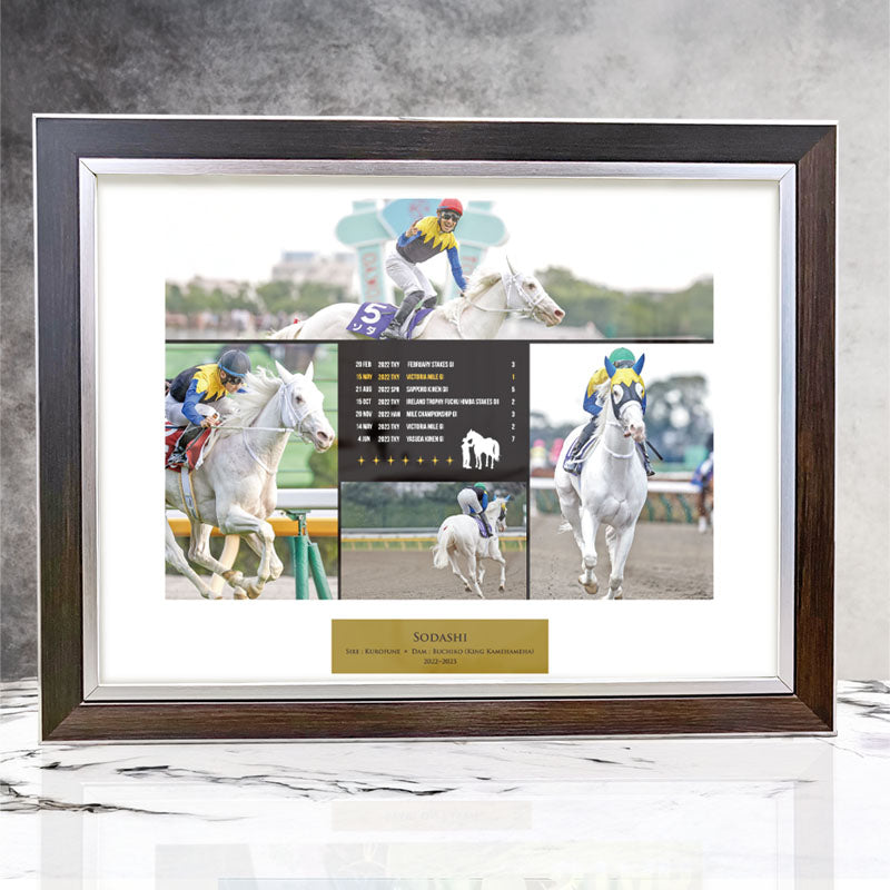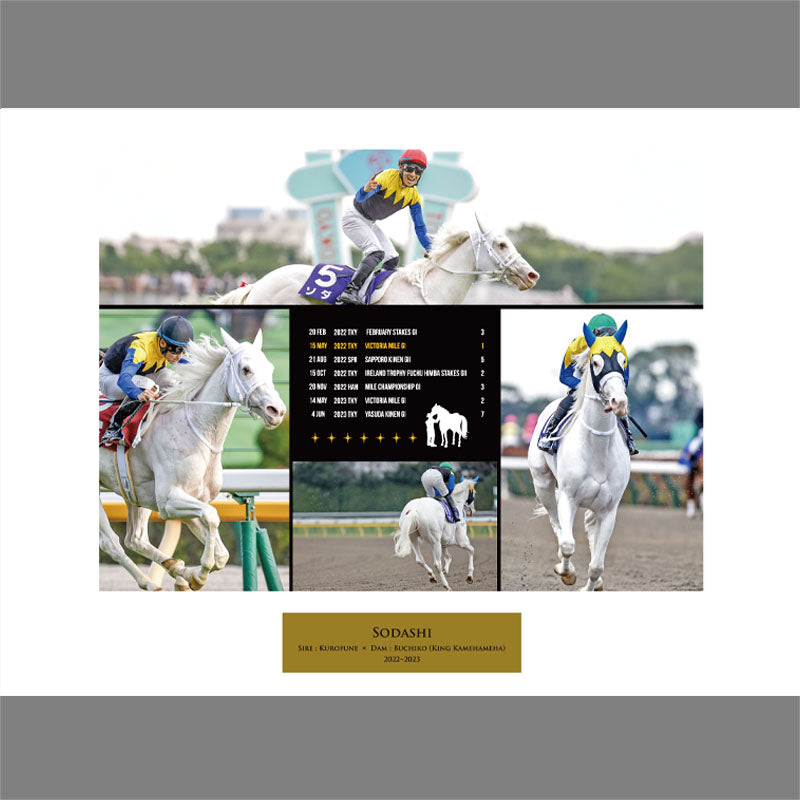 現役時代はGI・3勝を挙げた白毛のアイドルホース・ソダシのオリジナル写真パネルBです。