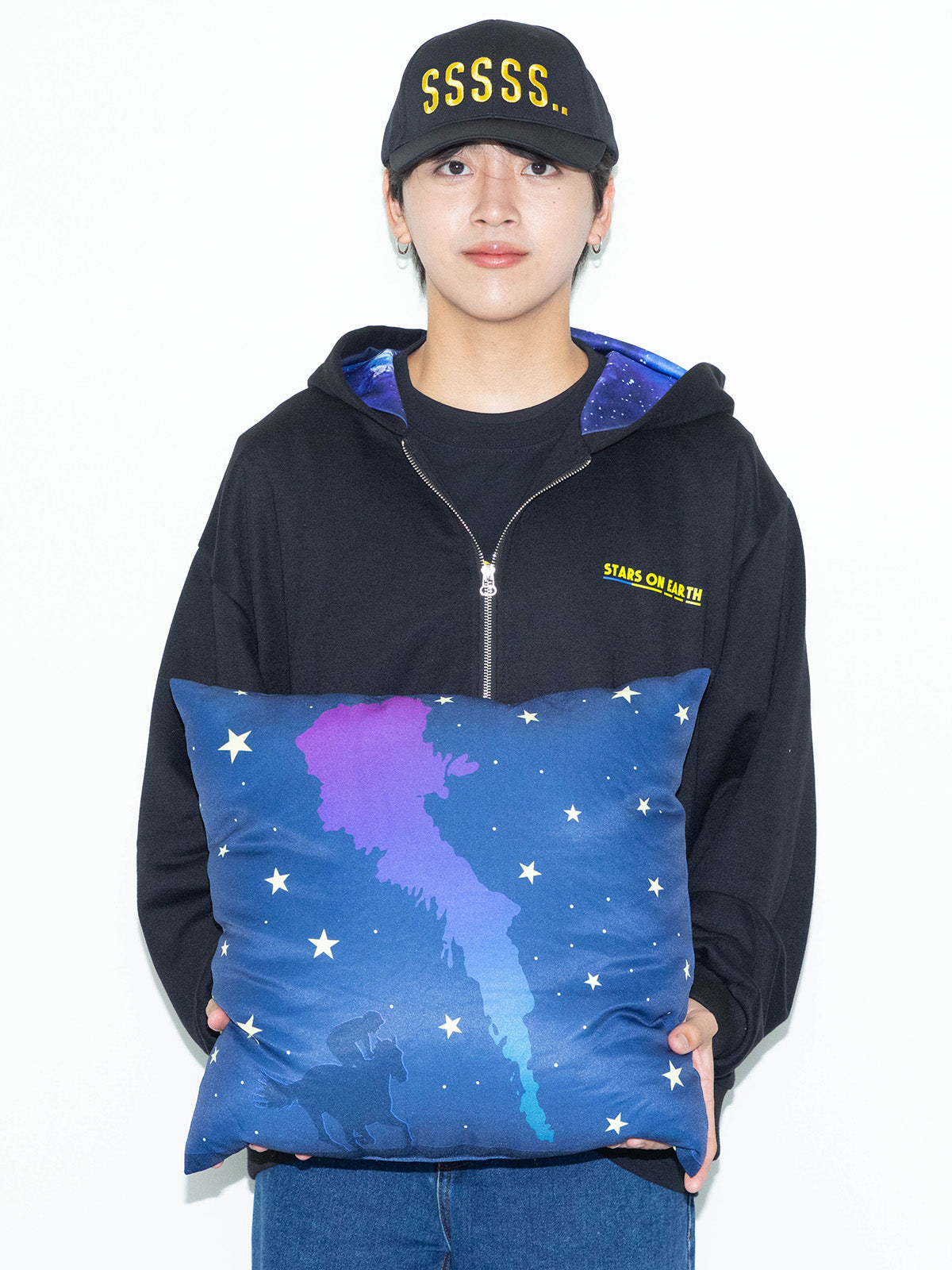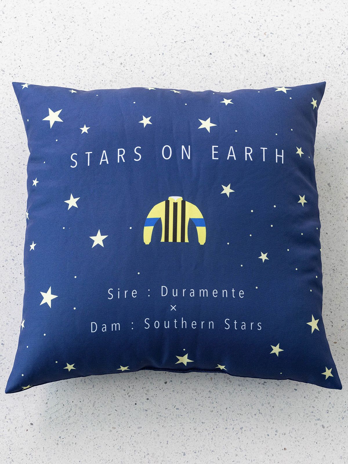 馬名の由来にちなみ、星空に流星の雲がたたずむ星空を駆け抜けるスターズオンアースをイメージ。