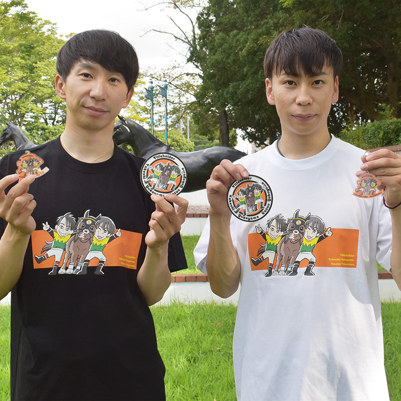 タイトルホルダーと横山和生騎手・武史騎手を応援するファンの皆さまに、バッグなどに取りつけていただき、一緒にお出かけいただければ幸いです。
