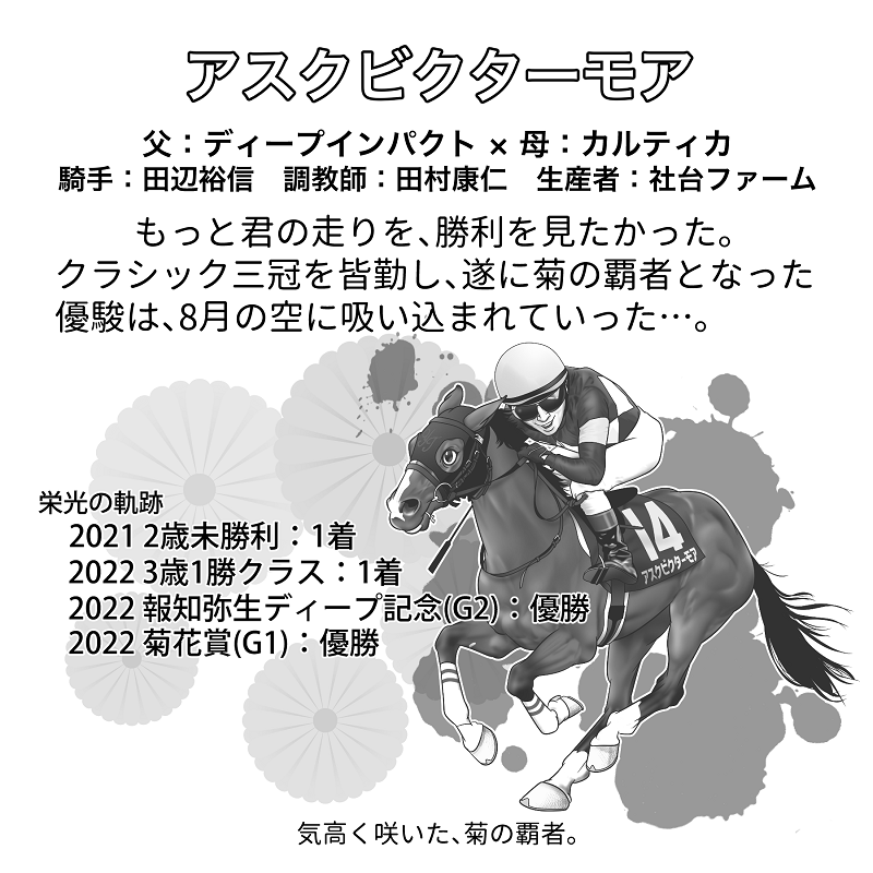 ラインナップはアスクビクターモア・イクイノックス・エアグルーヴ・サトノダイヤモンド・ジェンティルドンナ・スターズオンアース・ドウデュース・ドリームジャーニー・ブローザホーン・リバティアイランド。