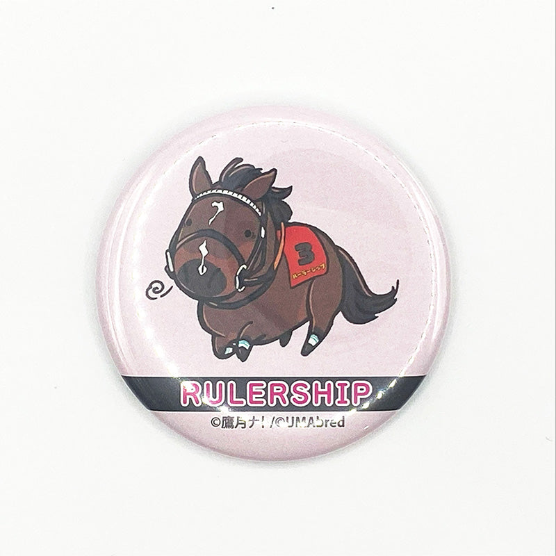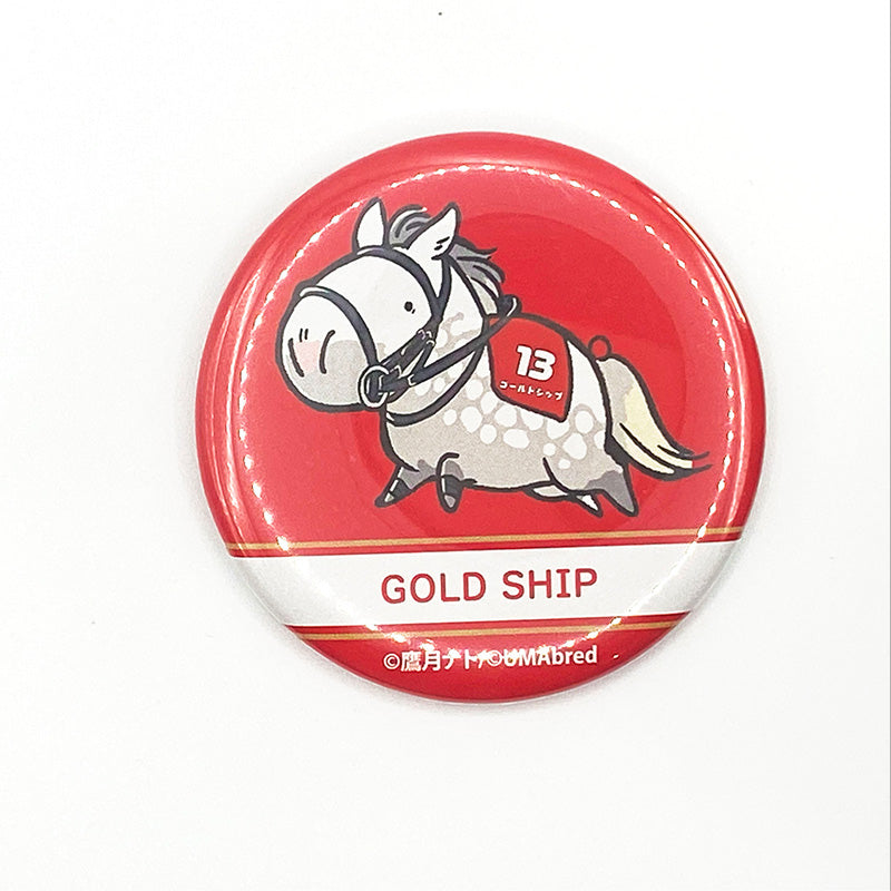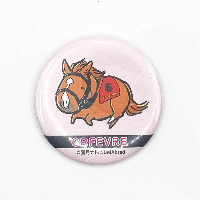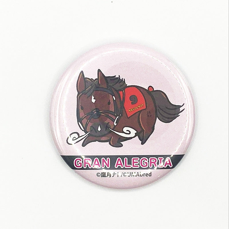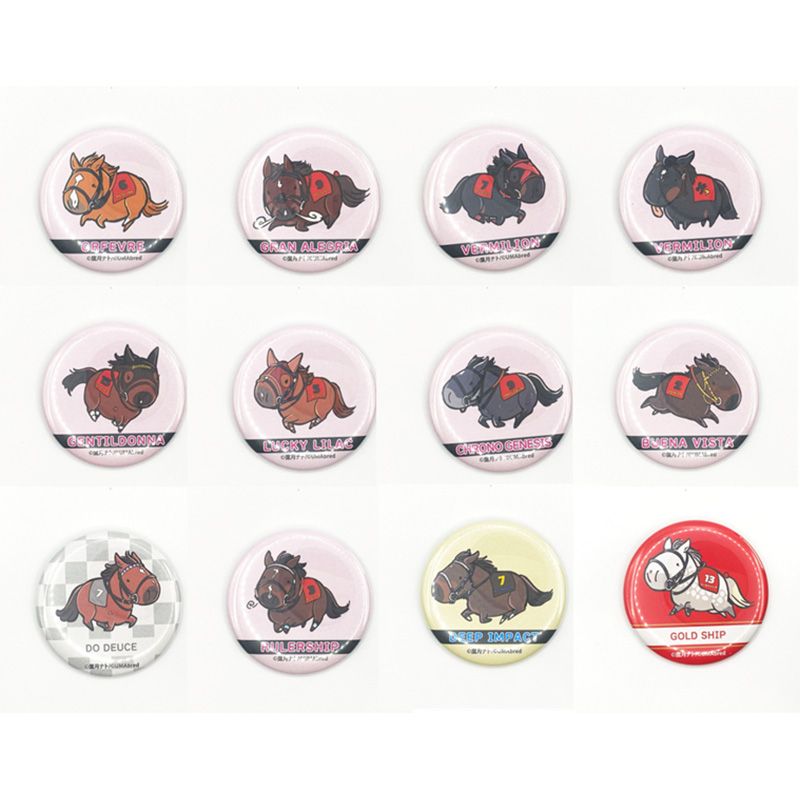 実在の引退馬・競走馬を可愛らしい缶バッチにデザインしました。